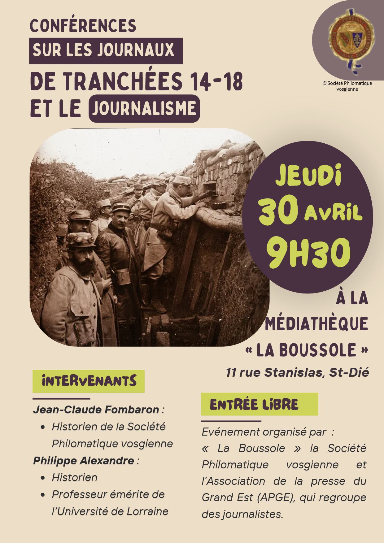 Samedi 21 février à 16h00 à Bruyères : conférence de Jean-Claude Fombaron
