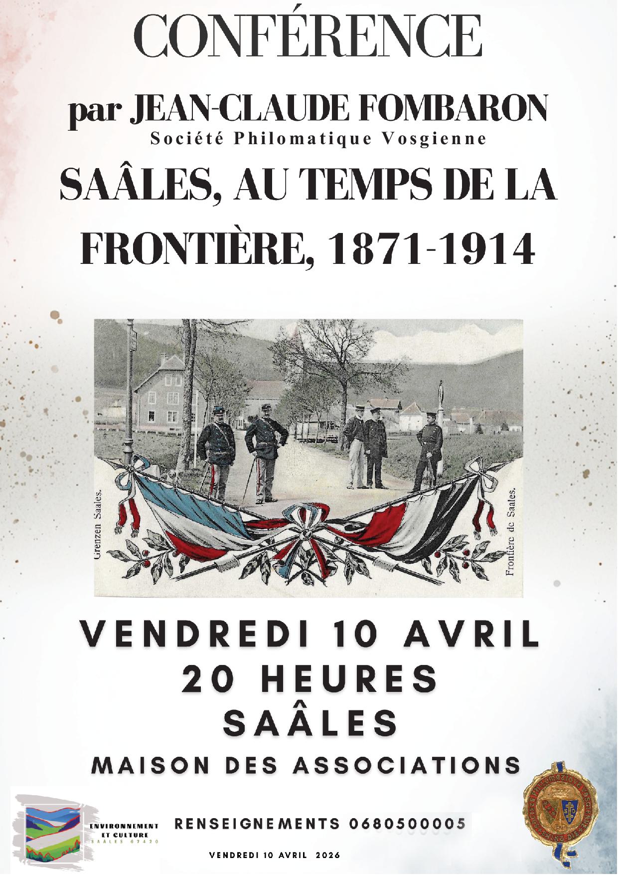 Vendredi 10 avril à 20h00 : conférence de Jean-Claude Fombaron à Saâles