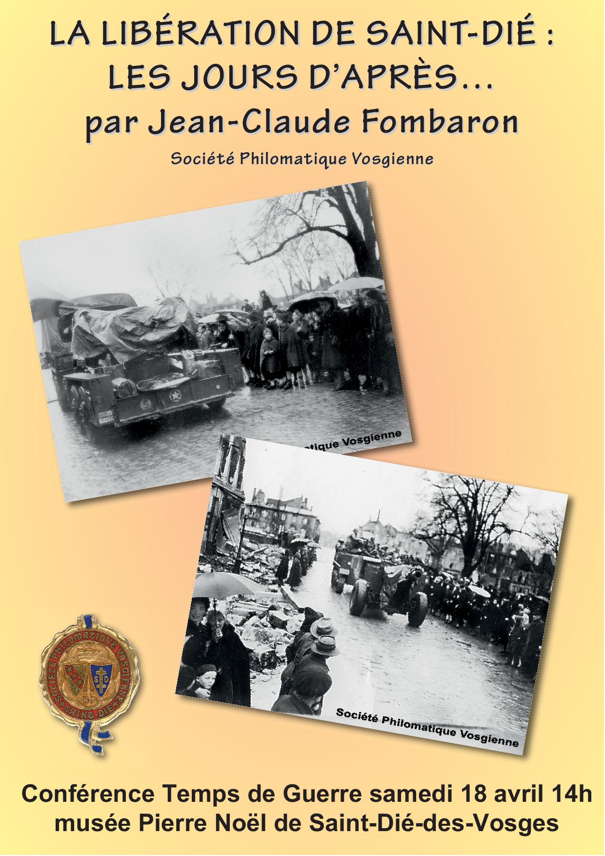 Samedi 18 avril à 14h00 : conférence Temps de Guerre LA LIBÉRATION DE SAINT-DIÉ : LES JOURS D’APRÈS…